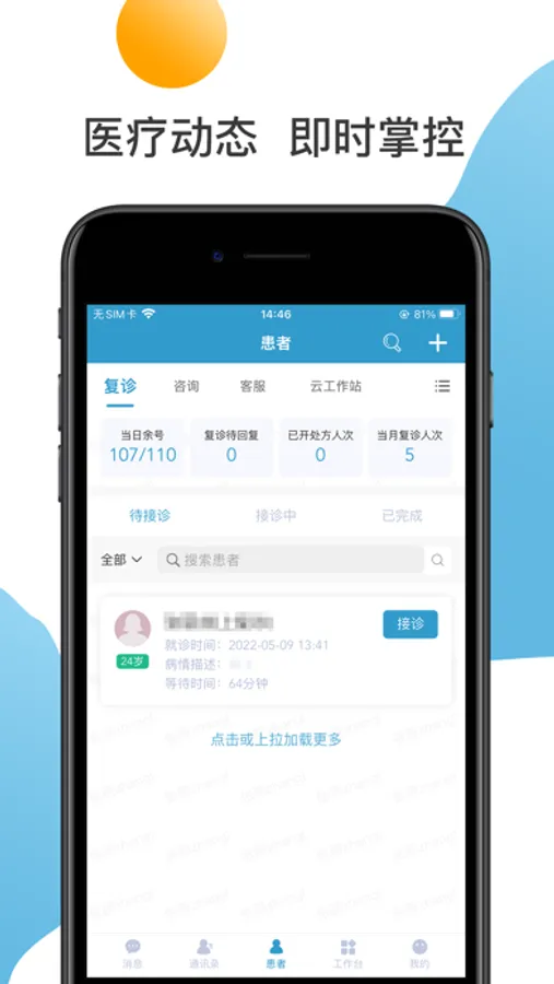作平台,应用包括患者信息查询,医生即时聊天,医患