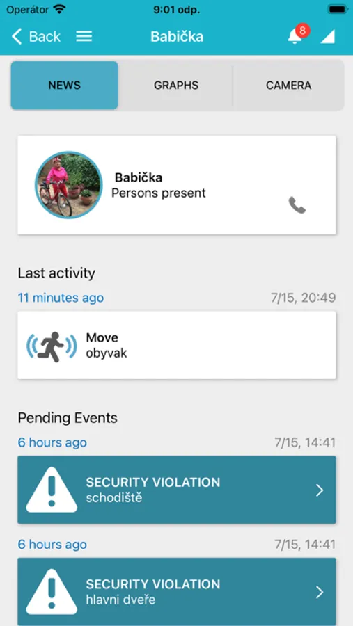 The eHelper system is effective care for the elderly and disabled using smart technologies that improve the physical and mental well-being of the individual. The system itself automatically detects non-standard movements in the housing unit of your cared for person. The principle of operation of the eHelper system is that it learns the normal daily routine of a senior in his natural environment and, in the event of a non-standard situation, AUTOMATICALLY informs the caregiver about the occurrence of such a situation. The system is wireless and easy to install.