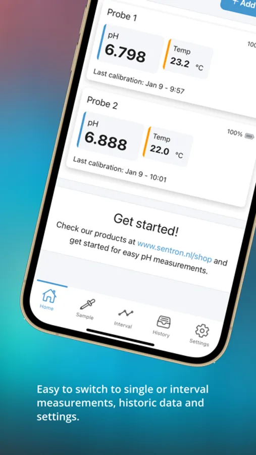 The app is intuitive and guides you through the complete process of setting configurations, calibrating, acquiring, storing and exporting all measurement data. Monitoring pH was never that easy!