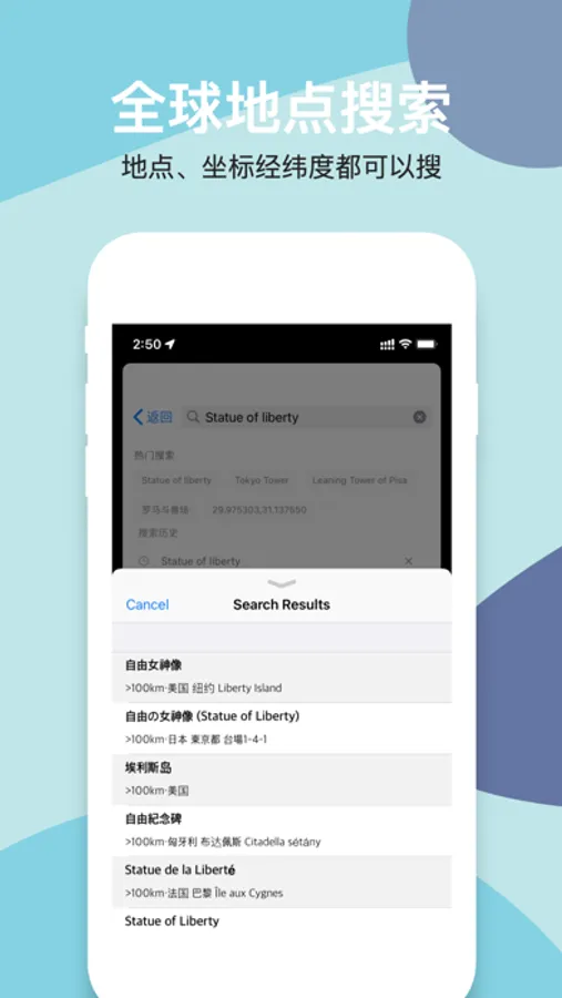 - Search: Search anywhere in the world at will