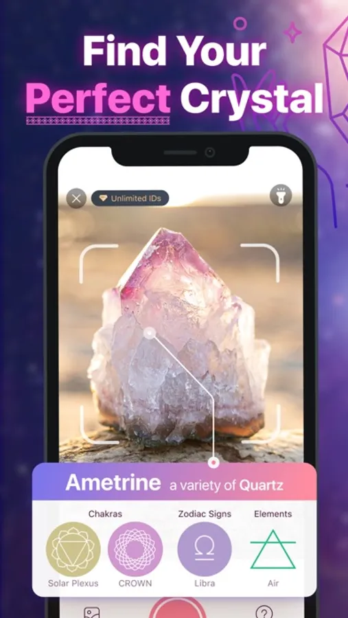 - Easily identify any crystal or gemstone in seconds with a quick photo