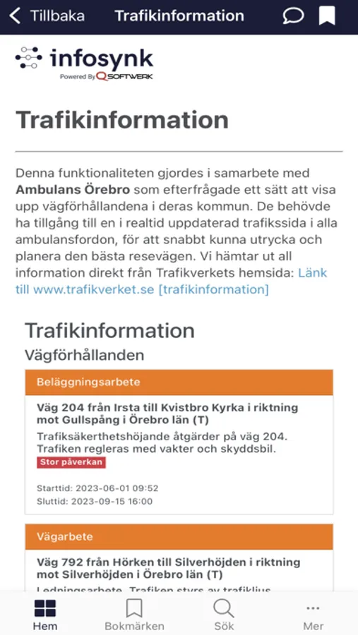 Syftet med appen är att den ska användas som en demoplattform för alla potentiella och befintliga kunder till Softwerk AB. Det är tänkt att överföra kunskap, processer, designidéer, arbetsflöden samt visa upp Infosynks funktionalitet.