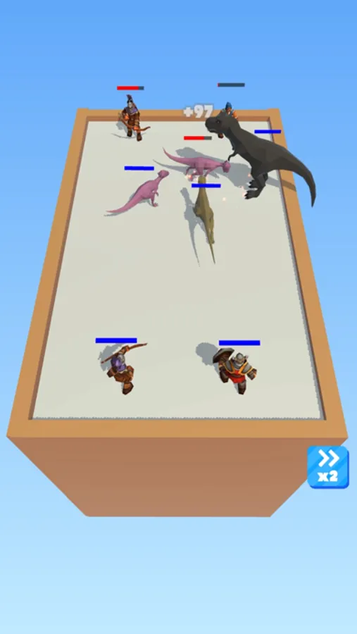 Use your strategy to merge dinosaurs and warriors, creating a formidable team to fight against enemies like dragons, monsters, T-rex, and other fierce dinosaurs. Higher-level monsters and warriors deal more damage, so plan your upgrades wisely.