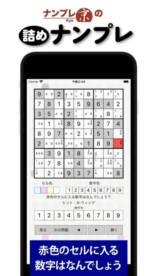 赤いセルに入る数字を下のボタンから答えてください。