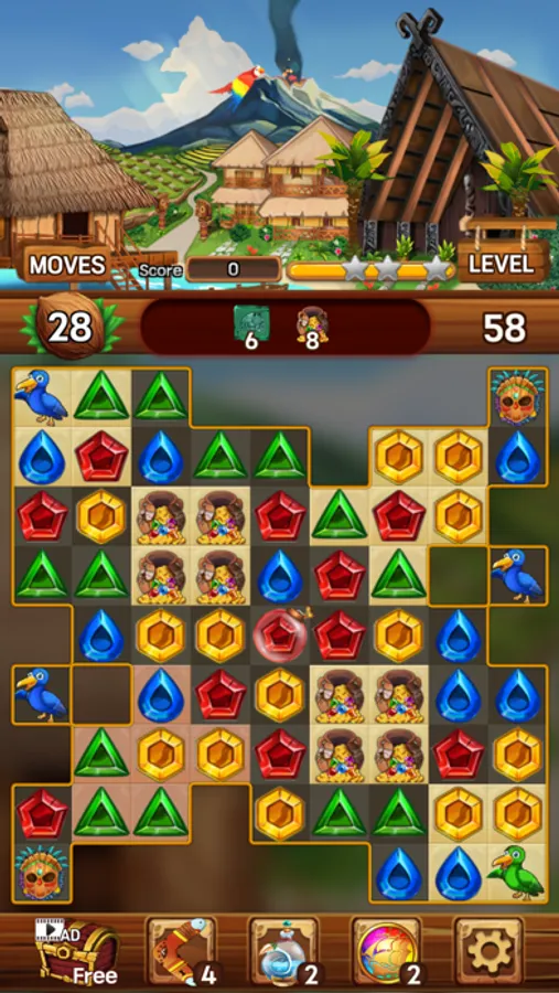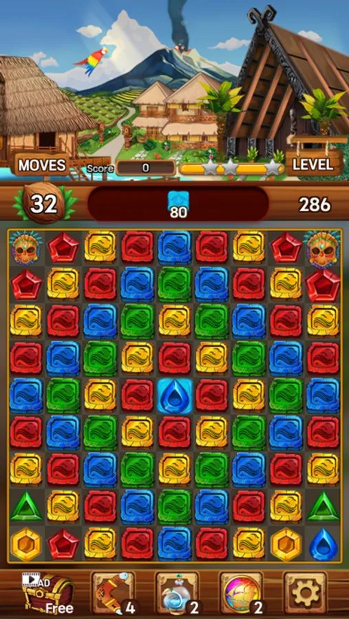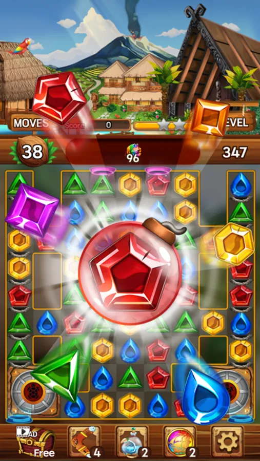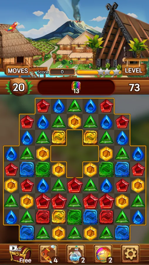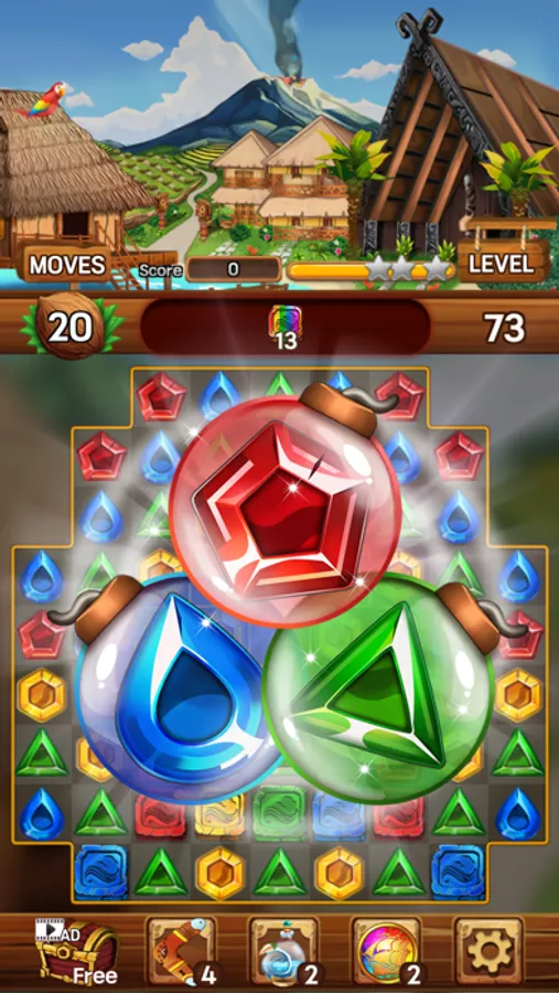 Enjoy your time on the island removing shining jewels and mischievous monkeys!