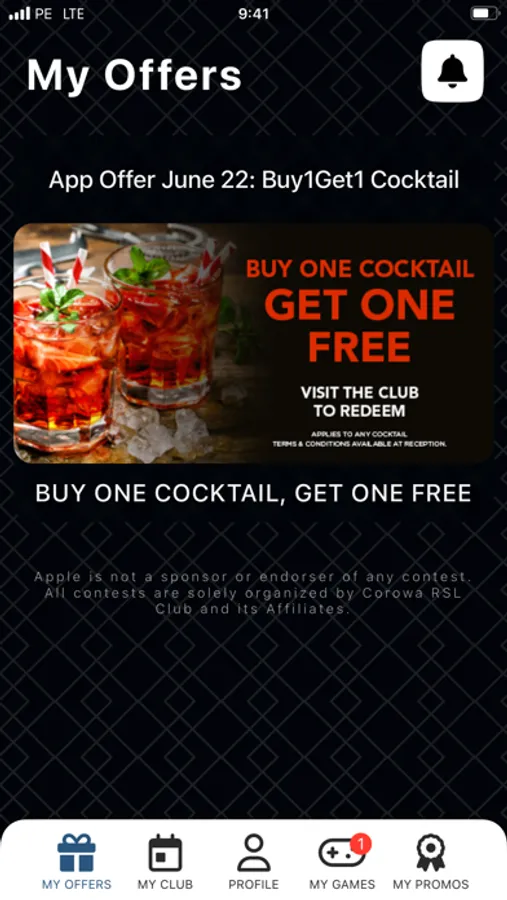 * Be part of exclusive interactive Club Promotions, sent to your phone via push notification for redemption at the venue counter