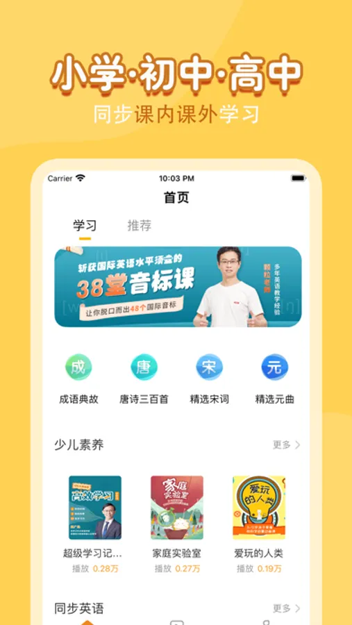 Synchronous Learning Primary Chinese is an APP developed for primary school students from Grade 1 to grade 6 to learn synchronous Chinese. The APP integrates primary school synchronous classes, featuring English picture books, and captures classic children's books, fairy tales, enlightenment stories, nursery rhymes, ancient poems and idioms. It promotes the quintessence of China and reads global classics! Cultivate children's creative imagination, thinking science, emotional intelligence enlightenment, habit formation, reading enlightenment and other areas of all-round development. In learning can also give children to learn quality education content. Comprehensive ability has been improved.