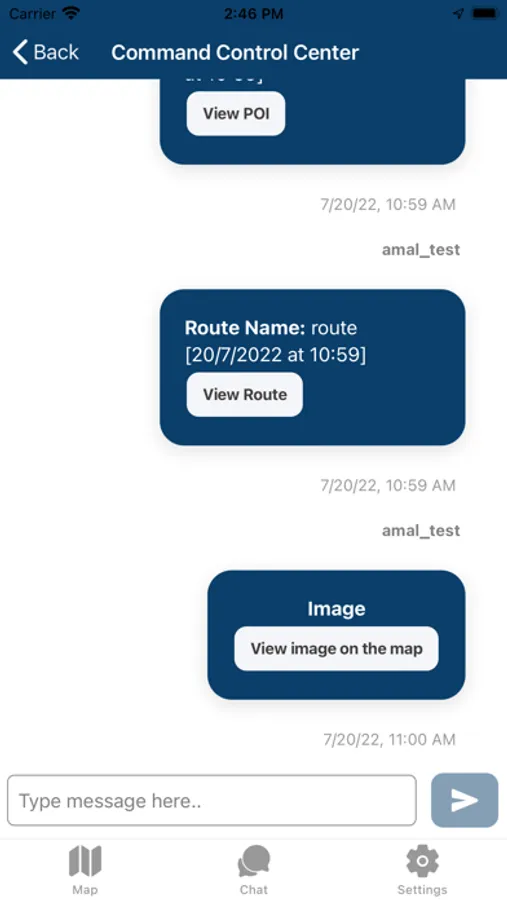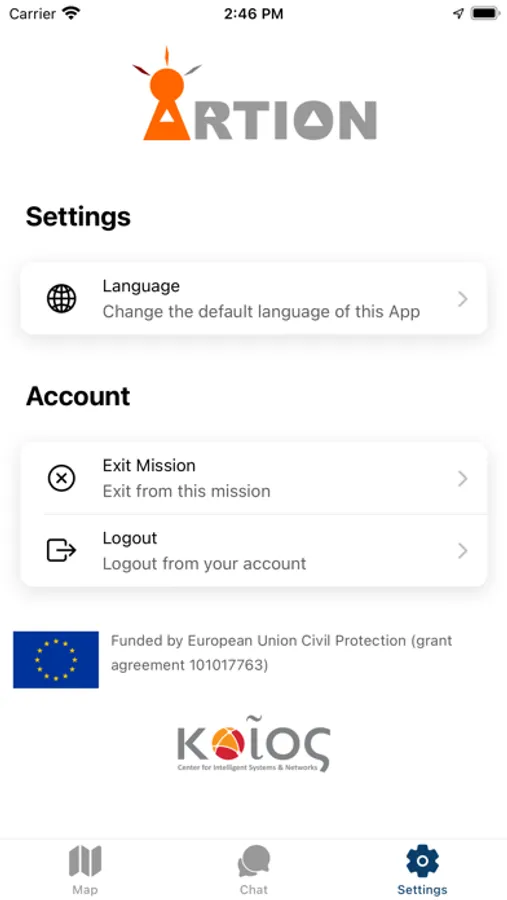 The ARTION Mobile App is an application that can be used during First Responder Missions. This application allows users to track their team members' location during a mission. It also includes a real-time chat functionality to allow them to communicate with the commander and their Team.