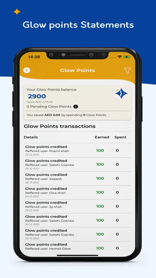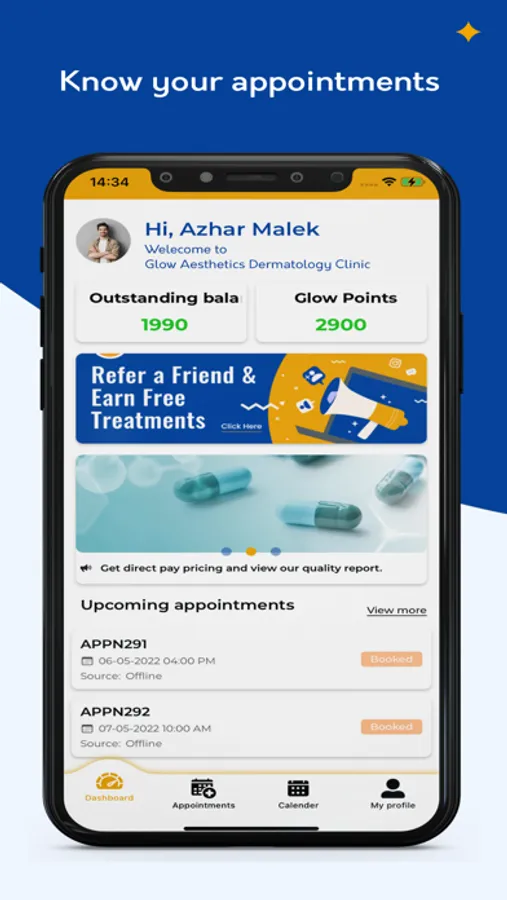 The application is for the clients to track their appointments, available sessions, and history of sessions taken. They can check their account statements and Glow Points statements and manage their profile on the go.