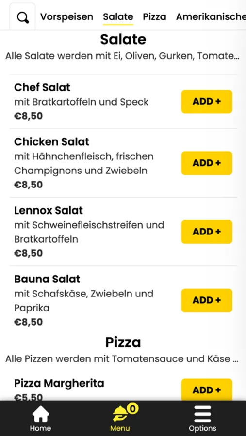 - Durchsuchen Sie die Speisekarte des Restaurants und sehen Sie sich alle anpassbaren Optionen im Voraus an