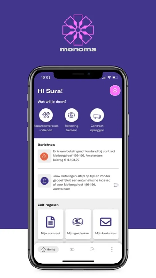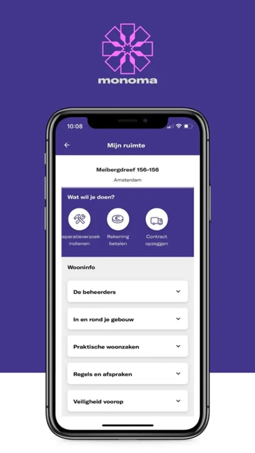 Do you have a living or working space with Monoma? Arrange everything regarding your living or working space quickly and easily with the My Monoma app. Whether you want to pay the rent, request repairs or change your personal information, the My Monoma app is your portal to your Monoma space.