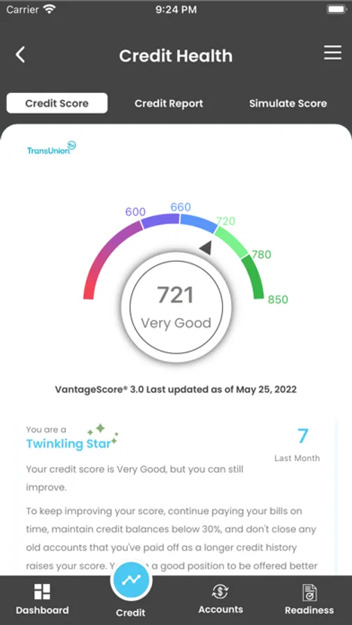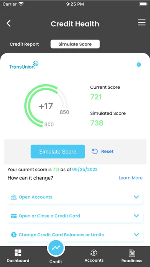 Your credit score is prominently displayed in your dashboard - and it doesn't cost you anything. Track changes month to month and learn the key factors that make up your score like length of credit, timely payment history, utilization of credit, total accounts opened and inquiries. Don't worry, this is a "soft credit pull" meaning there is no impact to your score by checking it. Look through your credit report for accuracy. Access helpful articles that explain credit bureaus, credit score, and more.