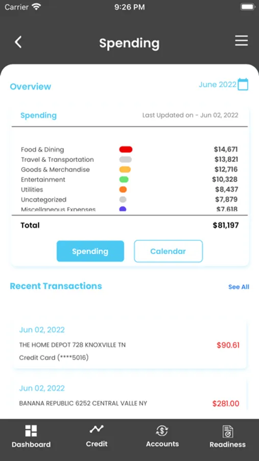 Understand what you are spending and where. Track your spending by categories and drill down into subcategories. Receive alerts if you are off track or confirmation if you are on track.