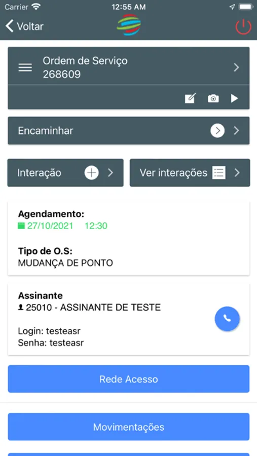 - Informações completas e detalhada do endereço da ordem de serviço.