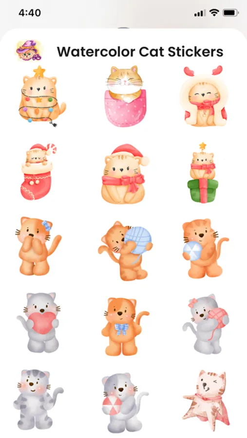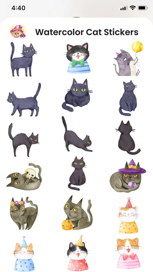 Cat stickers tell more than words!. These cat stickers are showing many faces you use but with extreme cuteness. Love, fat, sad, mood, and many more, to share them with your friends. To better funny dialogue you can use the Watercolor Cat stickers app.