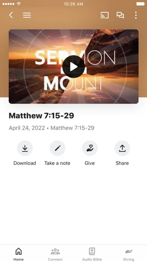 This app will help you stay connected with the day-to-day life of our church. With this app you can: watch or listen to past messages; stay up to date with push notifications; share your favorite messages via Twitter, Facebook, or email; and download messages for offline listening.