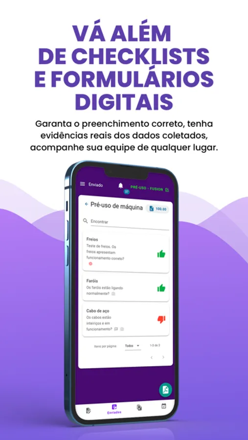 Além de checklists e formulários digitais! Garanta o preenchimento correto, tenha evidências reais dos dados coletados, acompanhe sua equipe de qualquer lugar e automatize a geração de relatórios e gráficos.