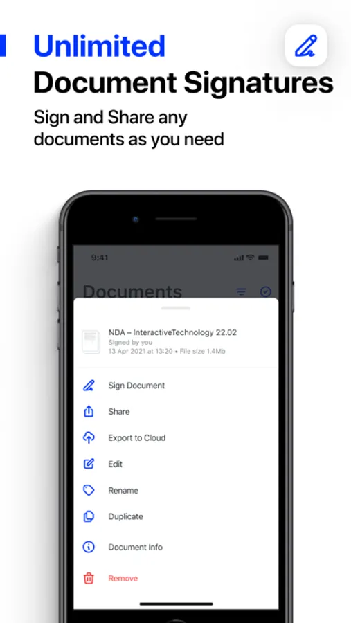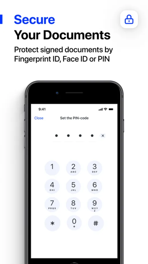 • Advanced security features - Authenticate and protect signed documents by Fingerprint ID, Face ID or PIN