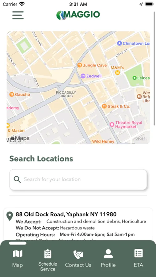 Maggio is proud to offer yet another way to quickly schedule your dumpster services while on the go using our mobile app. Simply create your profile and snap a picture of your serial number or enter the address of where the dumpster is located and we'll handle the rest. While we're always happy to speak with you on the phone or via email, this is just another way we love to communicate with our awesome customers. In addition, you can also find convenient locations to dispose of your debris at our facilities in the Long Island area.