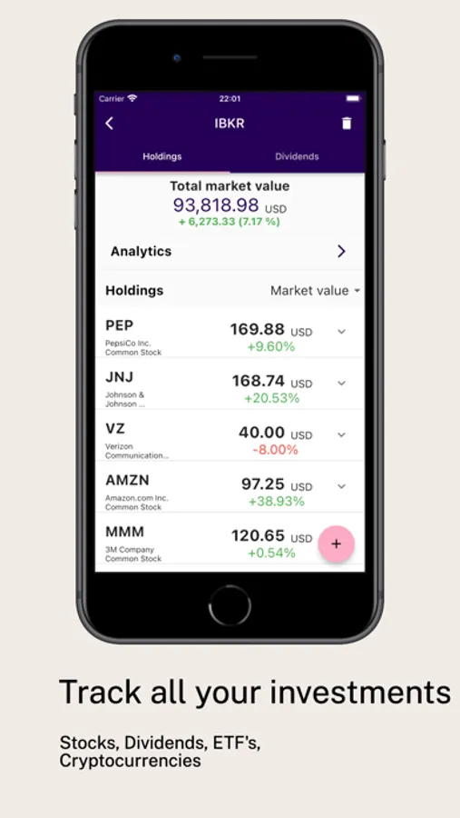 Inveester is a portfolio tracker that lets you track all your investments in an easy and accessible way and helps you get insights into your portfolio, including dividends and cryptocurrencies.