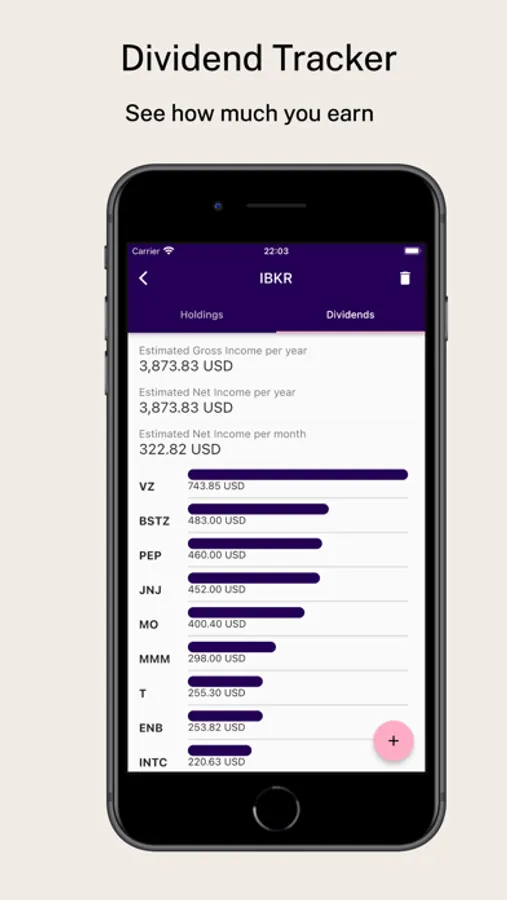‣ Dividends tracker (get a perspective on how much you will get over time)