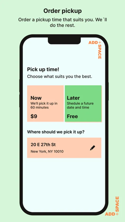 ADD + SPACE is a total hassle-free personal storage solution, equipped with AI technology and picture recognition. Take photos of the items you want to store, and the app automatically tags it and creates a virtual closet for you on your phone. Then just order pickup and ADD + SPACE will pick up your belongings and store them in a safe, nearby facility. As easy as ordering an Uber! Need something back? Just browse through your pictures, select the items and we’ll be at your doorstep before you even know it.