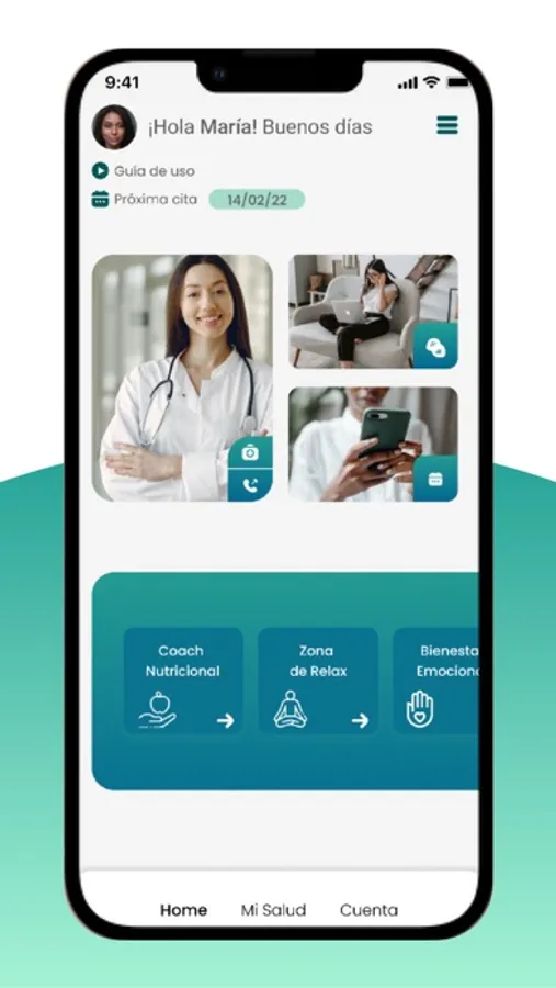 La plataforma permite acceder a médicos en línea 24/7 por videollamada o chat, acceder a podcast de meditación, test de bienestar con inteligencia artificial y consejos de salud para lograr una mejor calidad de vida. Cuenta con Coach Nutricional, especialistas en Salud Mental, Médicos Clínicos y Pediatras para acompañar el cuidado de las personas de forma continua y ubicua.
