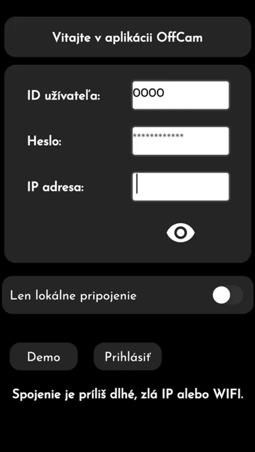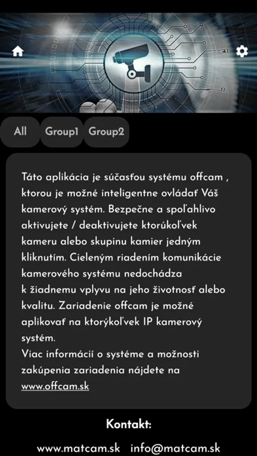 Upozornenie: Aplikácia vyžaduje zakúpiť externé zariadenie. Viac informácií na www.offcam.sk alebo info@matcam.sk