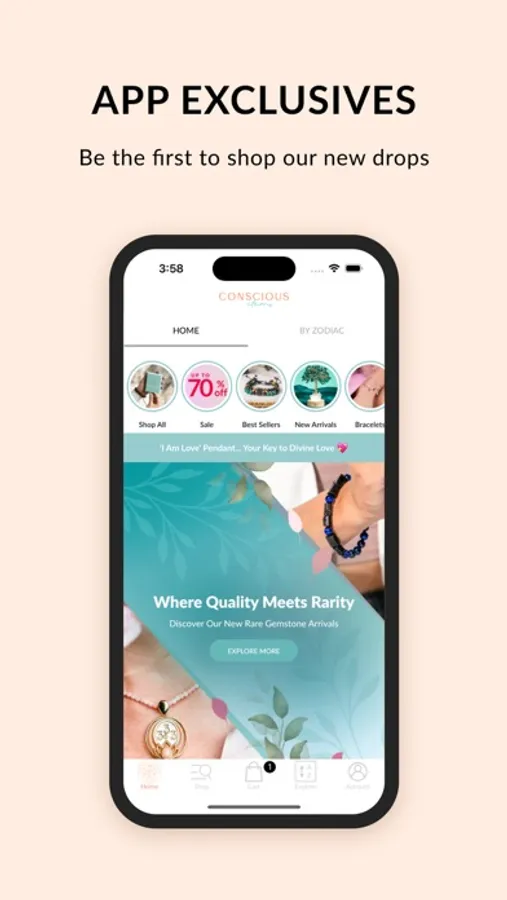 Looking for a way to enhance the everyday? Welcome to Conscious Items shopping app — a curated collection of crystals and nature-inspired jewelry designed to transform life through positivity.