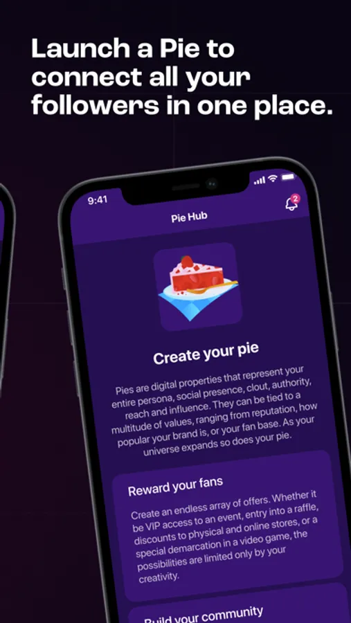Pies are dynamic membership groups that connect all your followers together in one place to supercharge your social media. These groups can be tied to a multitude of values, ranging from a person’s reputation, a brand’s popularity, or to an artist’s fandom.
