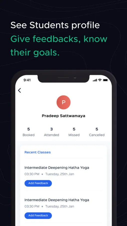 This app lets Shvasa teachers see their class schedule, communicate with students, see their class recordings, and make notes on students’ progress.