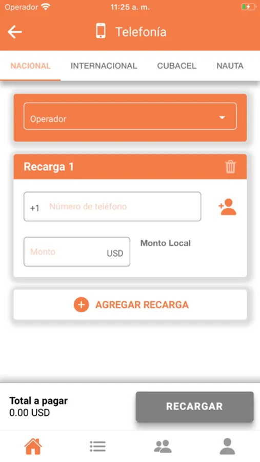 Puedes recargarte tú mismo, a familiares y amigos. La aplicación te permite usar los contactos guardados en el teléfono y agregar otros, revisar tu historial y gestionar tu perfil de usuario.