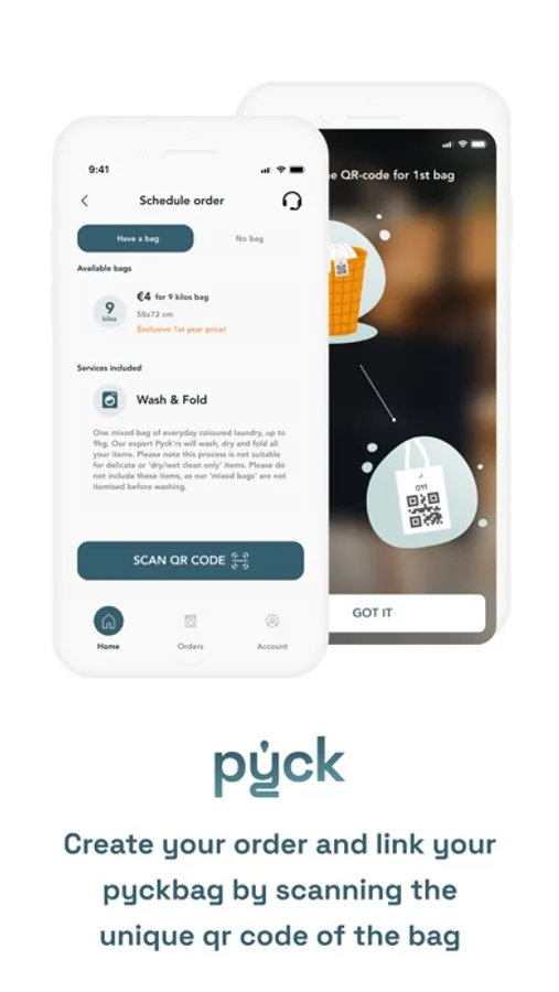 Take some time for yourself while PYCK is helping you with your laundry. Placing an order will only take a few steps. Simply look up the available cleaning service points in your city. For every new user, we provide a branded PYCK bag for transporting your belongings absolutely for free. You also have the option to purchase additional bags if needed. Our app allows you to monitor every step of your order in your smartphone. After completing just a few steps, you can order the necessary service and go to the most convenient drop-off point. The washing and drying process is carried out on first-class efficiency and high-quality green standards equipment only.