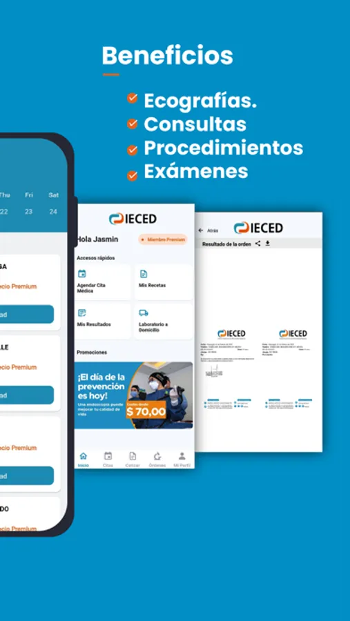 App para agendar consultas médicas en IECED, videollamadas, e historial de consultas.