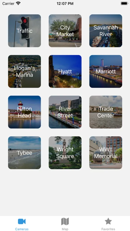 See where each cam is located on a map of the area, and add specific cams to your list of favorites.