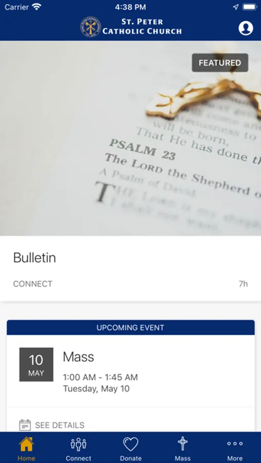 Connect and engage with our community through the Saint Peter Church and School app! Download our app to discover our media content, give a donation conveniently, or learn more about us. Living out our Catholic faith through service to our community.