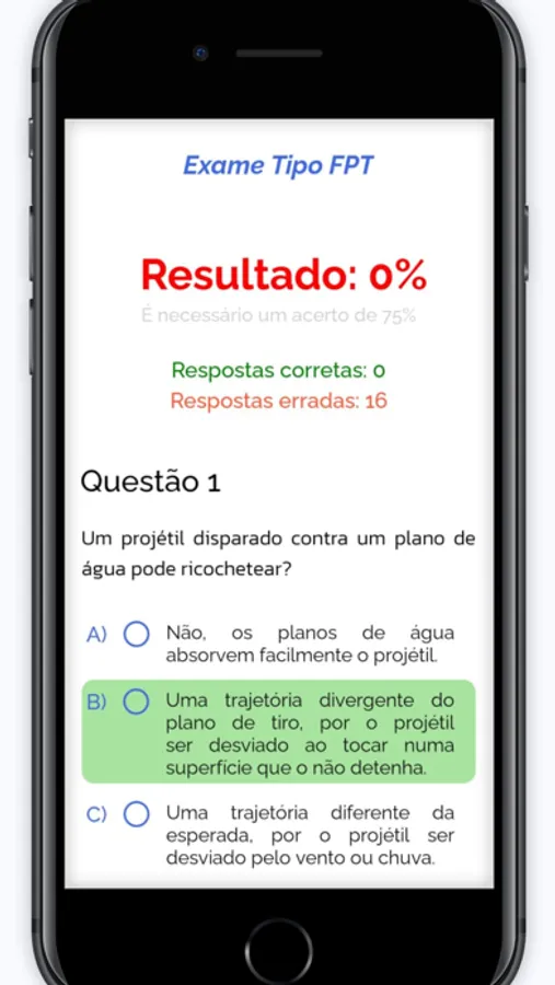 Cada teste é composto pelo mesmo número de perguntas oficiais dos exames, e no final, tens o teu