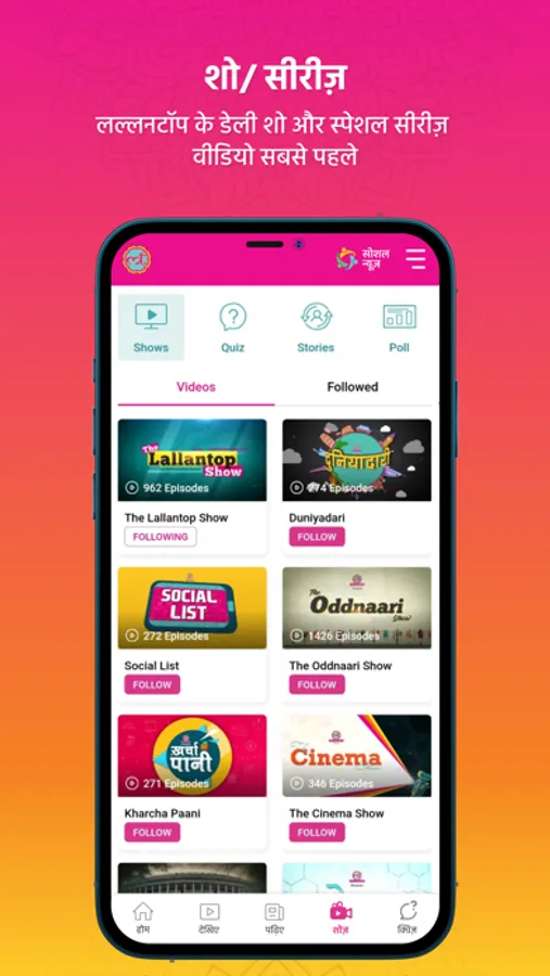 • Daily Shows: The Lallantop Show, Duniyadari, Social List, Meow, Tarikh, The Cinema Show, Sehat, Kharcha Paani & Sansad Me Aaj.