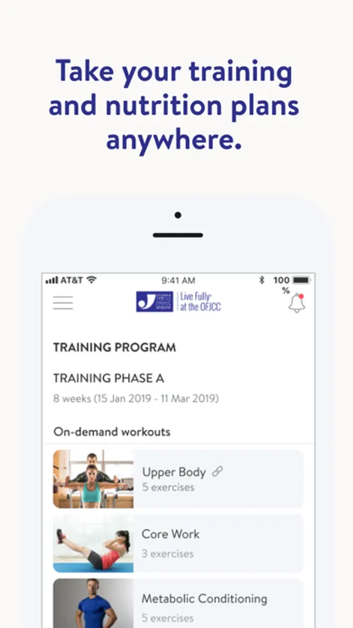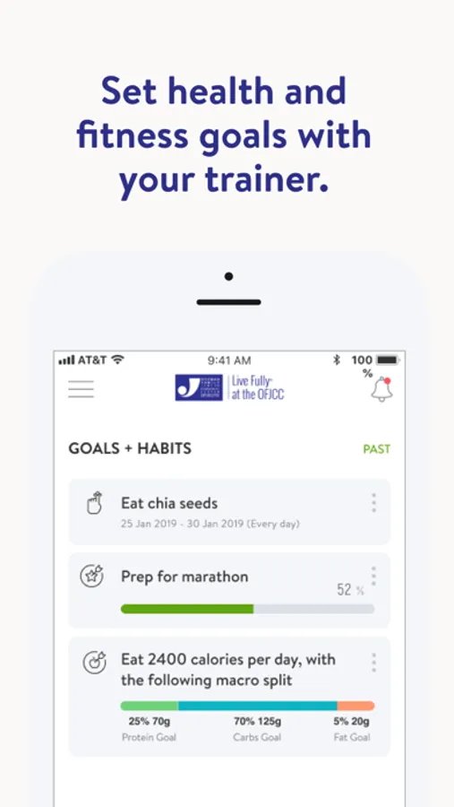 With the OFJCC Wellness App, you can start tracking your workouts and meals, measuring results, and achieving your fitness goals, all with the help of your personal trainer.