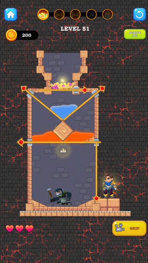 Welcome to Rescue Pin a pull the pin game. In this game, you have to solve puzzles and rescue the hero, collect all the treasures, kill monsters and save the princess!