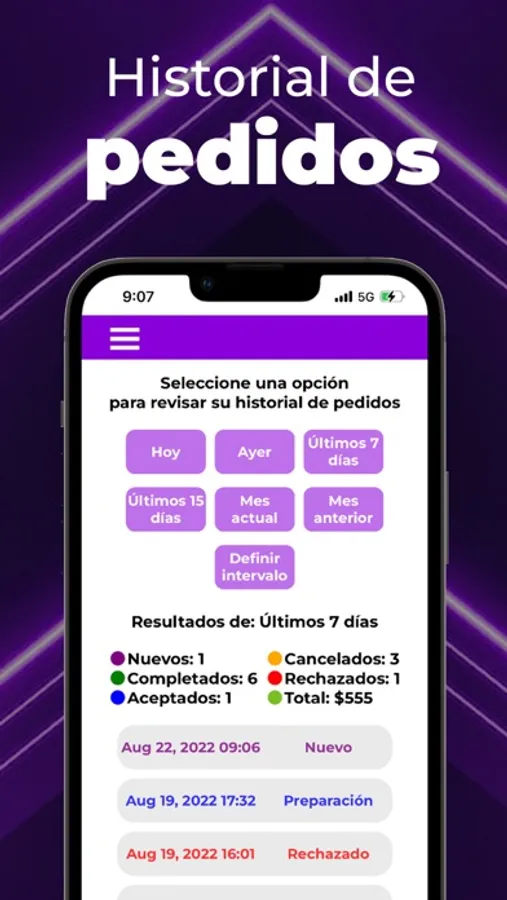 • Seguimiento de pedidos. Podrás consultar y administrar la entrega de cada pedido nuevo, en curso, cancelado y entregado.