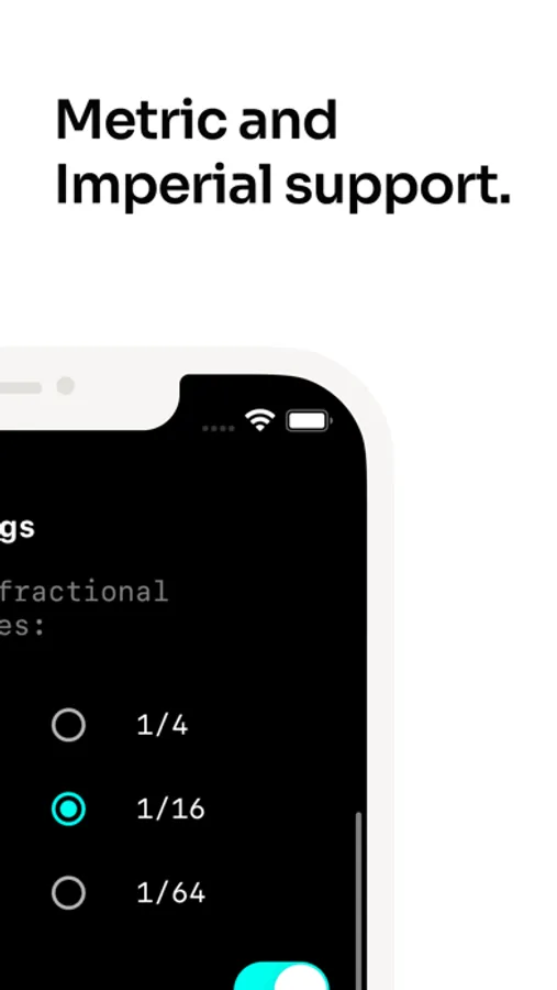 - Advanced calculation modes - Imperial, Metric, and US Fractional units