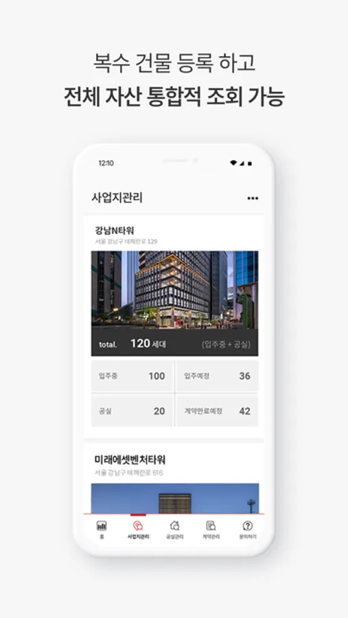 등록된 건물 및 사업지의 임대 현황을 한눈에 확인할 수 있습니다.