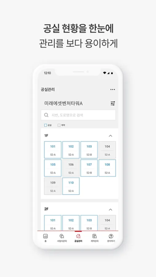 공실이 있는 경우 현재 공실이 어디인지 표시됩니다.