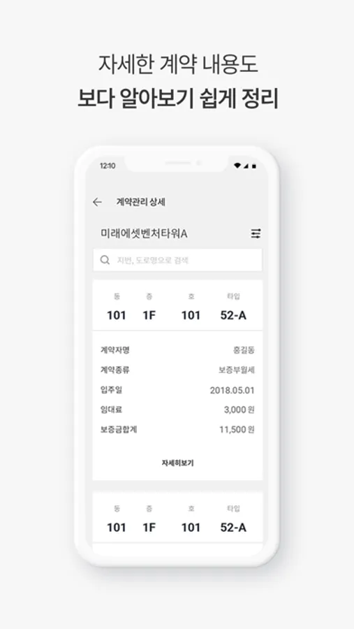현재 임차인의 계약 현황을 상세하게 보실 수 있습니다.