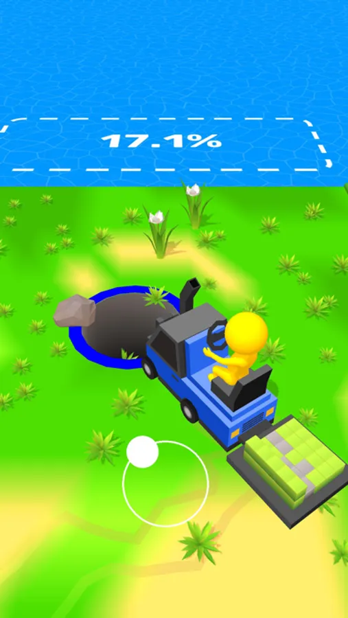 Operate a tractor with holes. Various materials are dropped into the holes and collected. Grass, trees, rocks, flowers, mountains ... or even ponds and waterfalls!