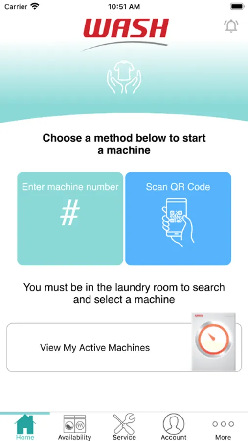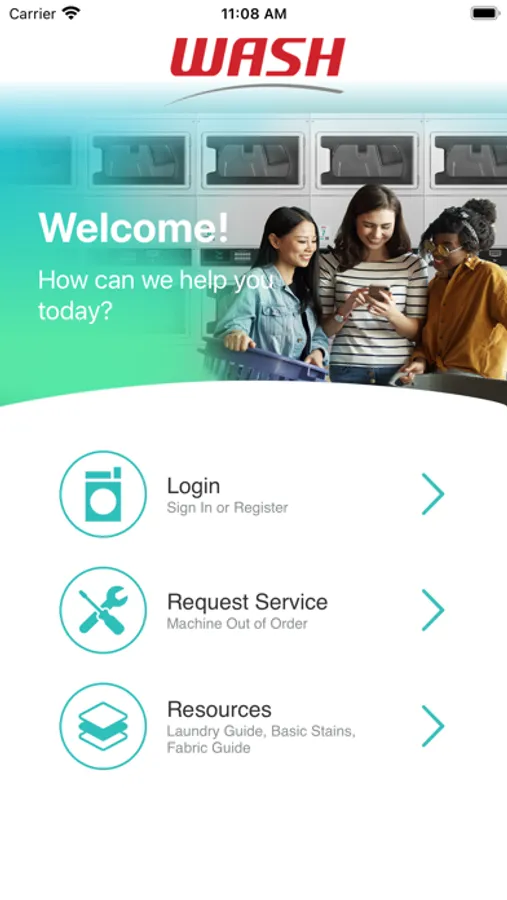 Use the WASH-Connect Campus app in participating WASH laundry rooms, request service, and check machine availability.