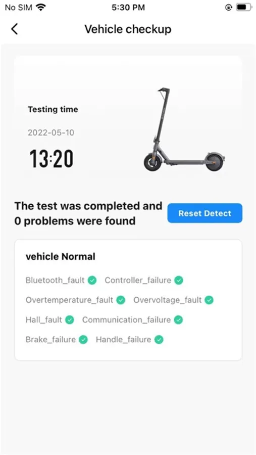 2. Display battery level, mileage and speed mode, detect scooter and battery status with one click;