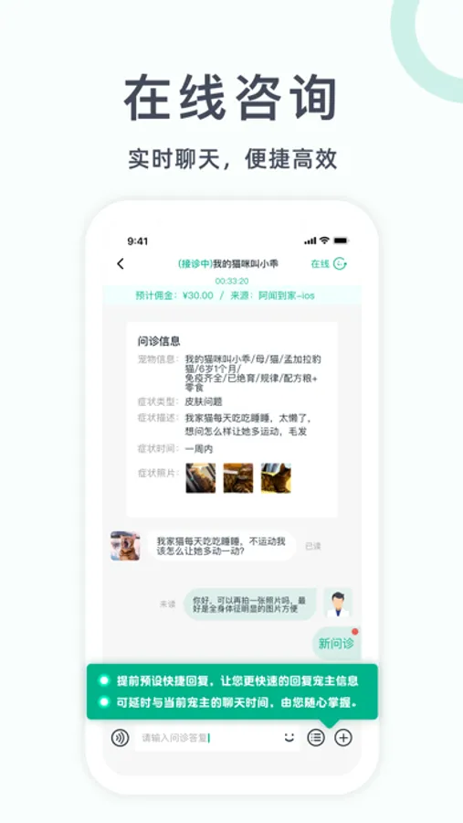 【图文咨询】宠物医生在平台在线实时接诊,为爱宠提供在线咨询服务;