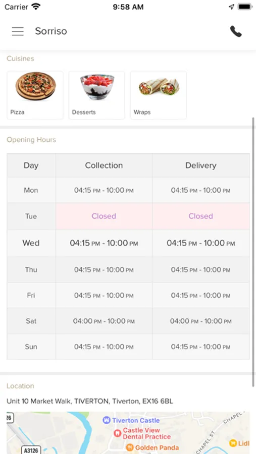 Sorriso in TIVERTON will always be offering great food at affordable prices. Please feel free to browse our new app and place your order online. Remember to check our new online ordering site to get up to date prices and exclusive special offers, limited to our online customers only!